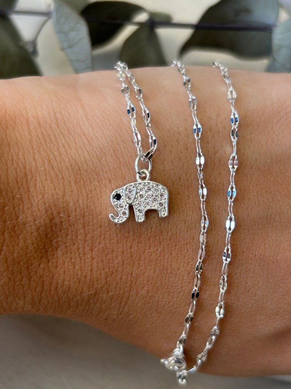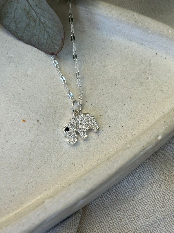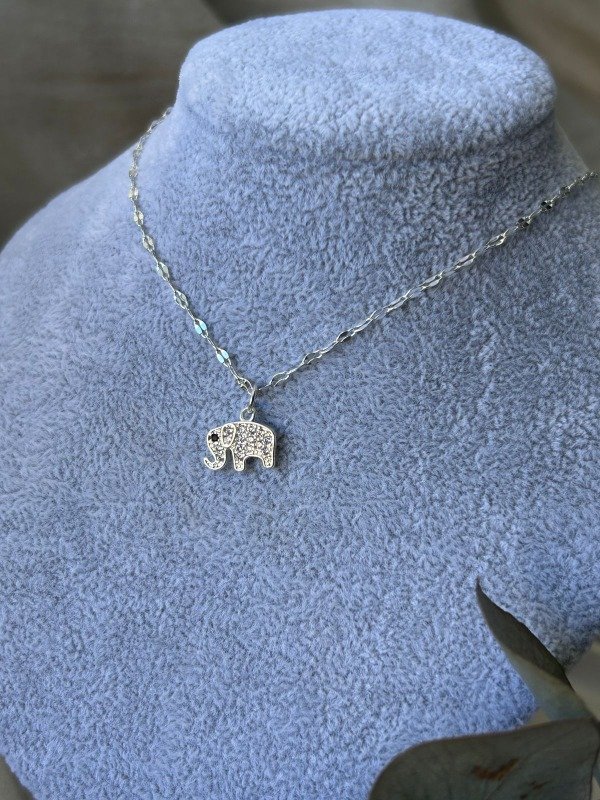 Conjunto de cadena de acero blanco con dije elefante con strass