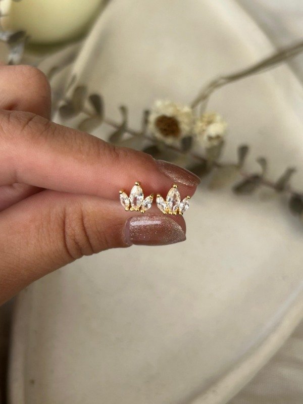 Par Aros pasantos Pétalos c/cubic | Acero Dorado