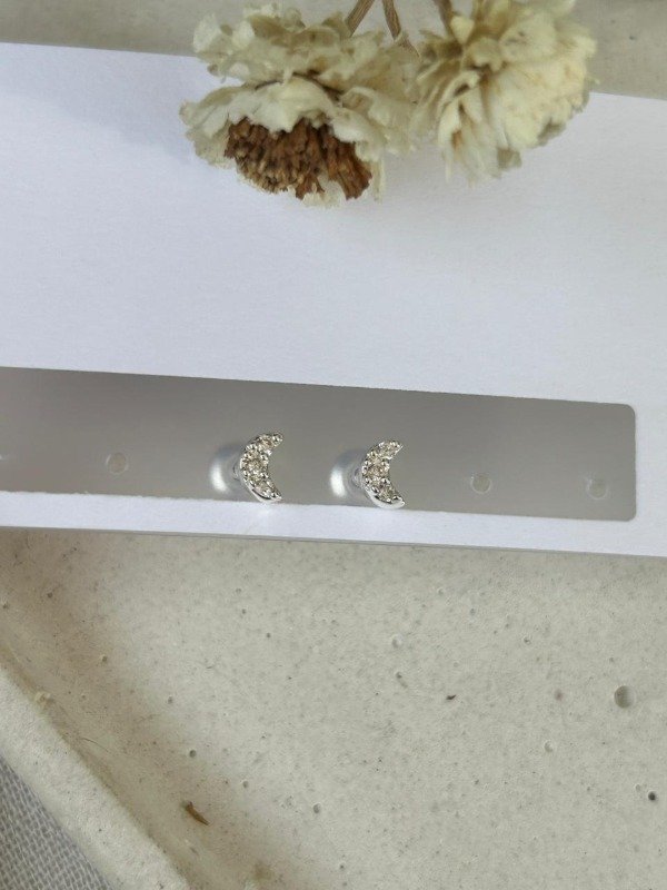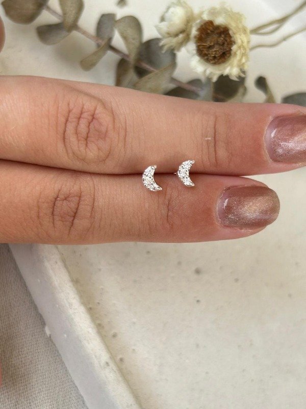 Aros Luna con cubic | Acero Blanco