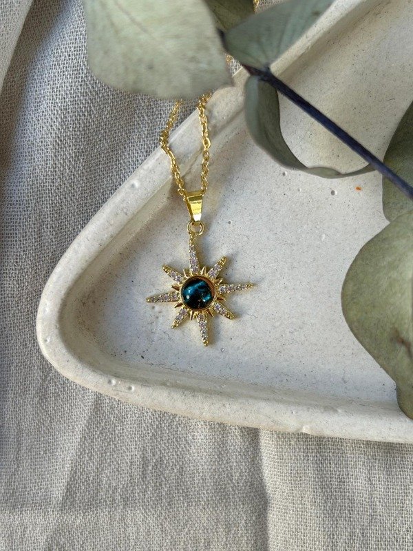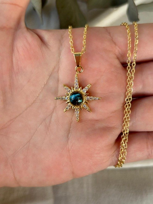Collar de acero dorado con dije galaxy y strass 45-50CM